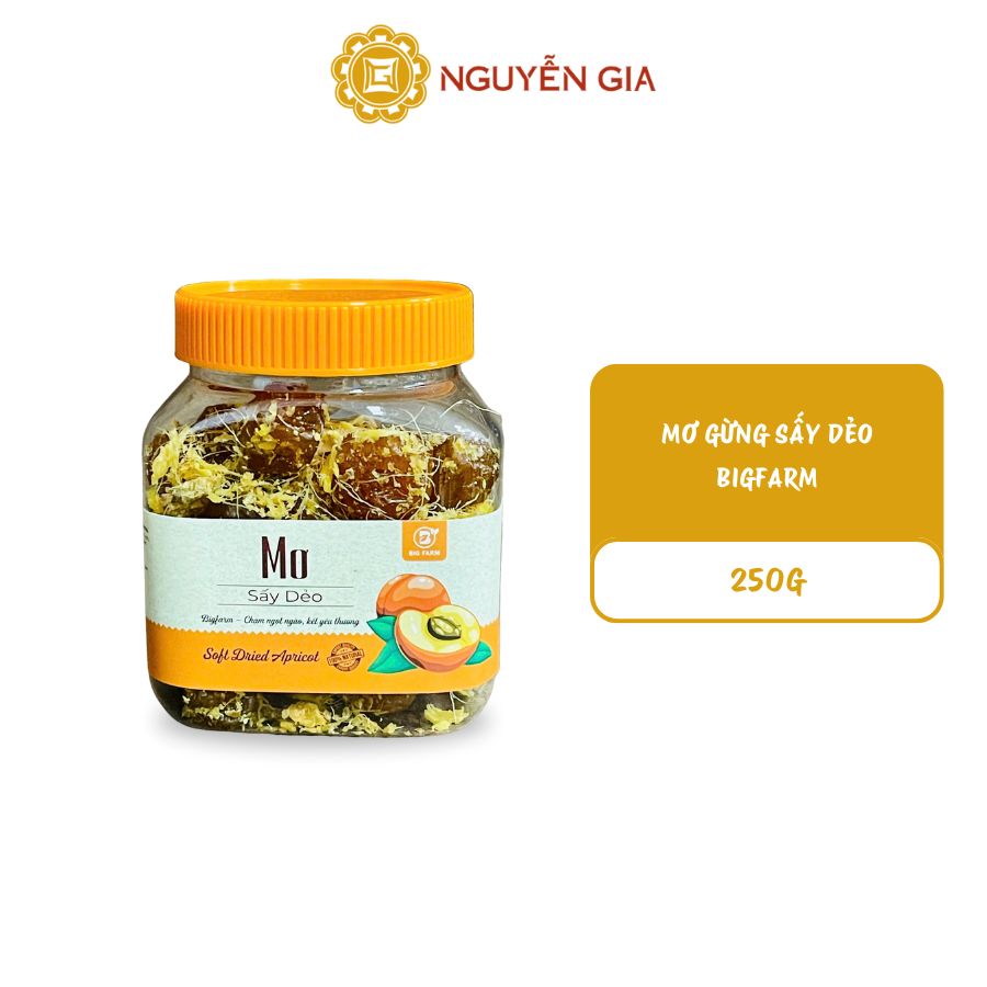 Sản phẩm sử dụng công nghệ sấy nhiệt độ thấp giúp giữ trọn vẹn vitamin và chất dinh dưỡng từ quả mơ. Gừng tươi được thái sợi nhỏ, thấm đều vào từng thớ thịt mơ, tạo nên độ dẻo dai đặc trưng. Sản phẩm không sử dụng chất bảo quản hay phẩm màu độc hại, đảm bảo an toàn vệ sinh thực phẩm.