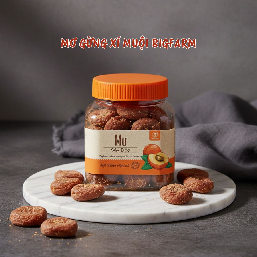 Mơ Gừng Xí Muội là sự kết hợp tinh tế giữa quả mơ rừng chín mọng và gừng già giã nhỏ. Sản phẩm được chế biến theo phương pháp truyền thống, giữ được độ dẻo của thịt quả và hương thơm đặc trưng của núi rừng. Lớp bột xí muội bao phủ bên ngoài tạo nên hương vị đậm đà, kích thích vị giác ngay từ lần chạm đầu tiên.