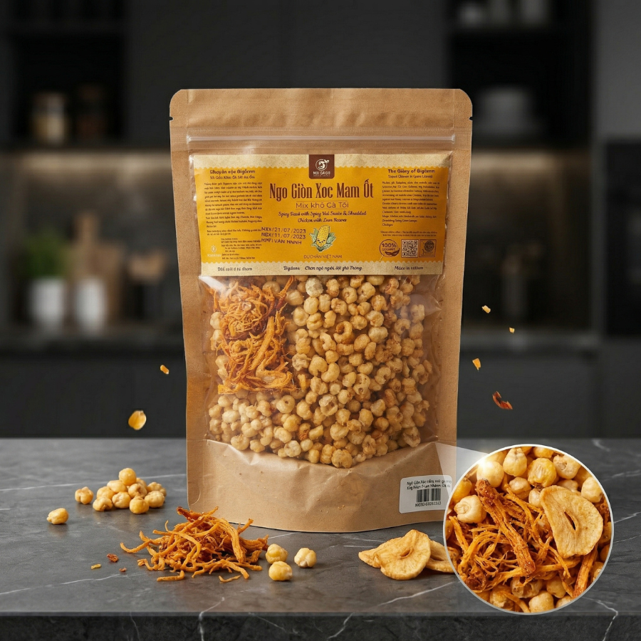 - Chất lượng đồng nhất: Hạt ngô luôn giòn, khô gà luôn dẻo và thấm vị, không có hàng vụn hay hàng tồn kho lâu ngày.